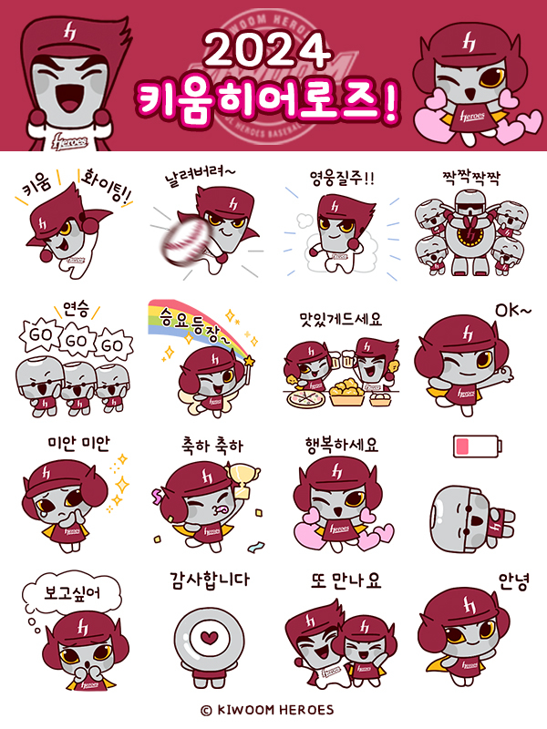 키움은 “오는 22일 키움증권과 함께 구단 최초 카카오톡 이모티콘 24종을 출시한다”고 21일 밝혔다.