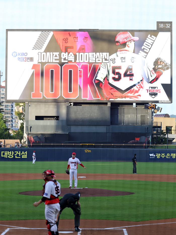지난 6월 6일 광주 롯데전에 KBO 리그 역대 2번째로 2000삼진 고지를 밟기도 한 양현종은 이날 1회초 선두타자 황성빈을 삼진으로 돌려세우며 이번 시즌 100삼진을 기록해 10연속시즌 100삼진의 대업 또한 작성했다. 이는 이강철(현 KT감독), 장원준(전 두산)에 이은 KBO 역대 3번째 기록이다. et16@sportsseoul.com