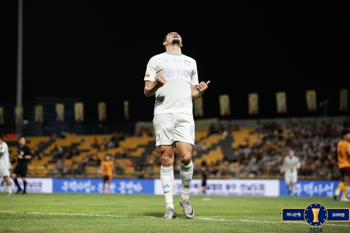 포항은 21일 제주월드컵경기장에서 열린 2024 하나은행 코리아컵 4강 1차전에서 제주와 원정 경기에서 2-2로 비겼다.