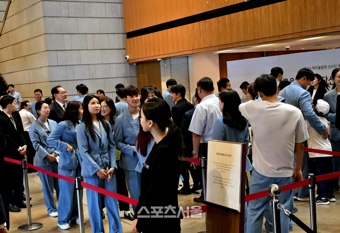 현대 정의선 회장, 오세훈 서울시장, 문화체육관광부 유인촌 장관, 대한체육회 이기흥 회장 등이 삼엄한 경비 속에서 입장했고, 푸른색 대한민국 올림픽 선수단복을 입은 박혜정(역도), 김하윤(유도), 김제덕(양궁), 김서영(수영), 임애지(복싱), 박태준(태권도) 등이 차례로 만찬장으로 들어갔다.