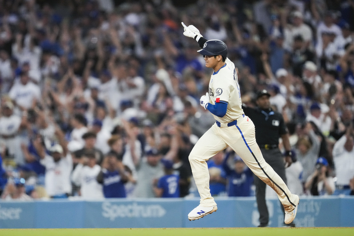 페넌트레이스 막바지 역대급 드라마를 만든다. 오타니는 지난 24일(한국시간) 탬파베이와 홈경기에서 끝내기 만루포를 쏘아 올렸다. 9회말 2사 만루에서 가운데 담장을 넘기는 홈런을 터뜨렸다. 이 홈런으로 오타니는 메이저리그(ML) 통산 6번째 40홈런·40도루에 성공했다. 4회말에는 특유의 주력으로 도루도 더했다. 내야 안타로 출루한 뒤 2루를 훔쳐 40번째 도루를 기록했다.