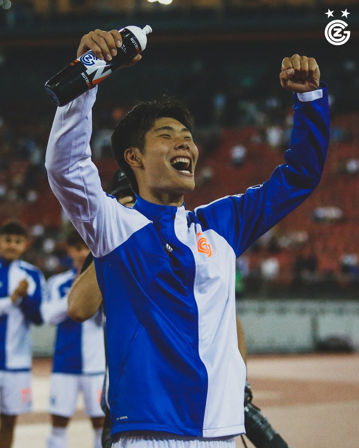 지난달 군 복무를 마친 뒤 K리그1 수원FC를 떠나 그라스호퍼로 전격 이적한 그는 이날 꿈에 그리던 유럽 무대 데뷔전을 치렀다. 그런데 이른 시간에 벼락 같은 데뷔골을 터뜨렸다. 그는 곧바로 관중석에 있는 팬에게 달려가 뒤풀이했다.