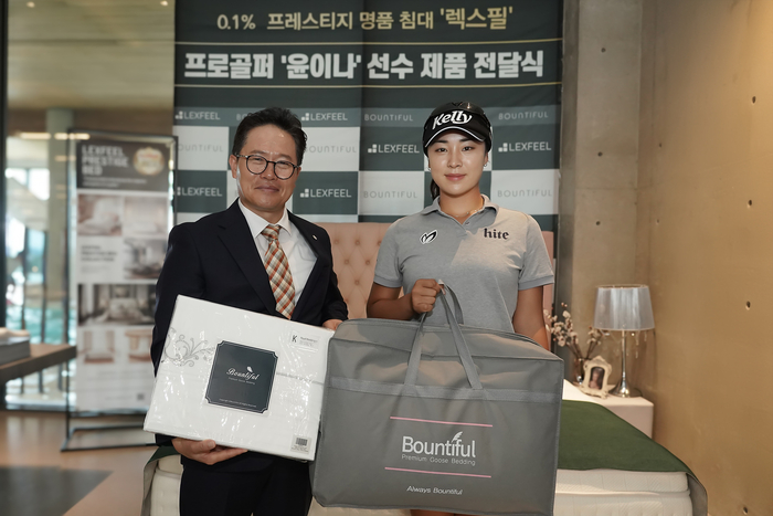 [스포츠서울 | 김용일 기자] 침구 브랜드 렉스필이 프로골퍼 윤이나(21)에게 1억3000만원 상당의 침구류 제품을 전달했다고 27일 매니지먼트사인 크라우닝이 보도자료로 밝혔다.