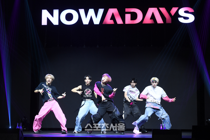 나우어데이즈(NOWADAYS)가 27일 서울 광진구 예스24 라이브홀에서 열린 두 번째 싱글 앨범 ‘NOWHERE’ 발매 기념 미디어 쇼케이스에서 타이틀곡 ‘Why Not?’ 무대를 선보이고 있다. 2024. 8. 27.