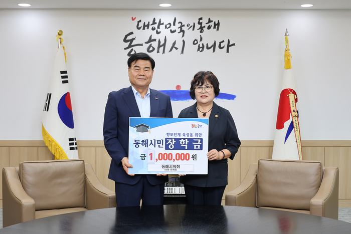 [스포츠서울ㅣ김기원기자]민귀희 동해시의원은 지난 8월 27일 지역의 인재들을 지원하는 데 힘쓰고자 동해시민 장학금 일백만원을 전달했다.