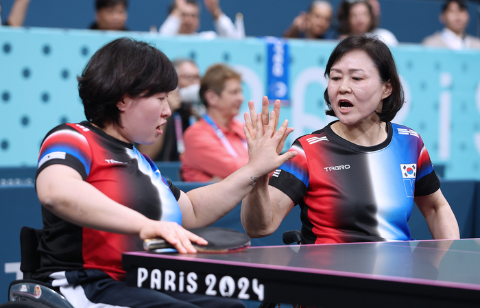 [스포츠서울 | 파리=김동영 기자] 대한민국 탁구가 여자복식에서 은메달 1개, 동메달 2개 확보했다. 서수연(38·광주광역시청)-윤지유(24·성남시청)조가 WD5 등급 결승에 올랐다. 강외정(58·경상남도장애인체육회)-이미규(36·경상북도장애인체육회)조와 정영아(45·서울시청)-문성혜(46·성남시청)조도 WD10 등급 4강에 진출했다.