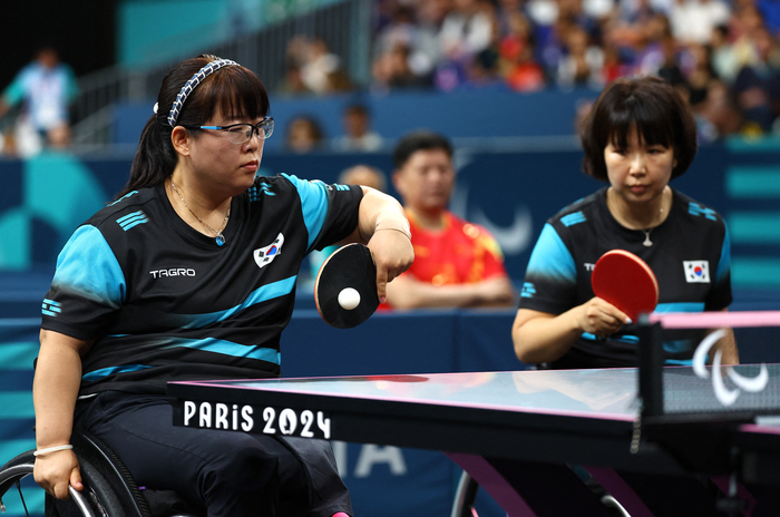 정영아(45·서울특별시청)-문성혜(46·성남시청)조는 31일(현지시간) 프랑스 파리 수드 파리 아레나4에서 열린 대회 탁구 여자복식(WD10) 준결승 구샤오단-판자민(중국)조와 경기에서 세트 스코어 0-3(7-11 6-11 8-11)으로 져 동메달을 목에 걸었다. 패럴림픽 탁구 복식은 3·4위전 없이 결승에 오르지 못한 두 팀에 동메달을 준다.
