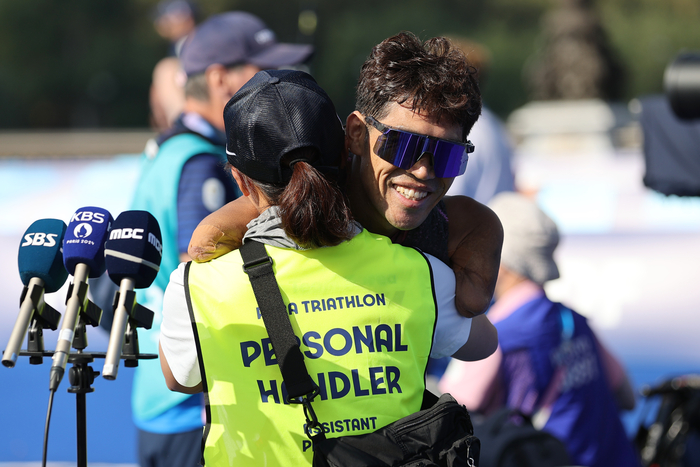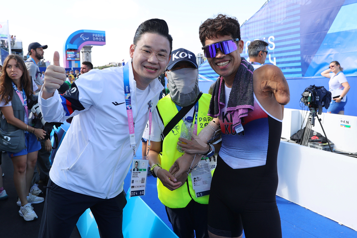 그리고 수영에서 사이클, 사이클에서 달리기로 종목을 변환할 때 ‘핸들러’(경기보조원) 역할을 한 아내 김진희씨의 도움을 받으며 차근차근 도전을 이어왔다. 기어이 파리패럴림픽 출전을 이뤄냈다.