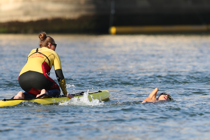 관건은 역시나 수영이다. 두 팔이 없는 김황태가 불리할 수밖에 없다. 센강 유속 또한 심해서 70% 정도는 배영을 해야만 했다. 이 때문에 종아리에 무리가 가면서 사이클, 달리기에 지장이 있었다.