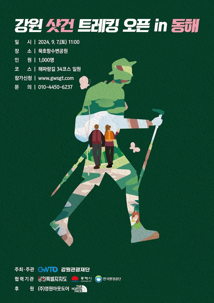 오는 9월 7일에 열리는 ‘강원 샷건 트레킹 in 동해’는 1,000명이 참여하여 묵호 수변공원에서 출발하여 망상해수욕장까지 해파랑길 34코스 일원 약 10km 트레킹을 진행하며 참여자 기념품 지급, 경품 등 다양한 체험거리를 제공할 예정이다.