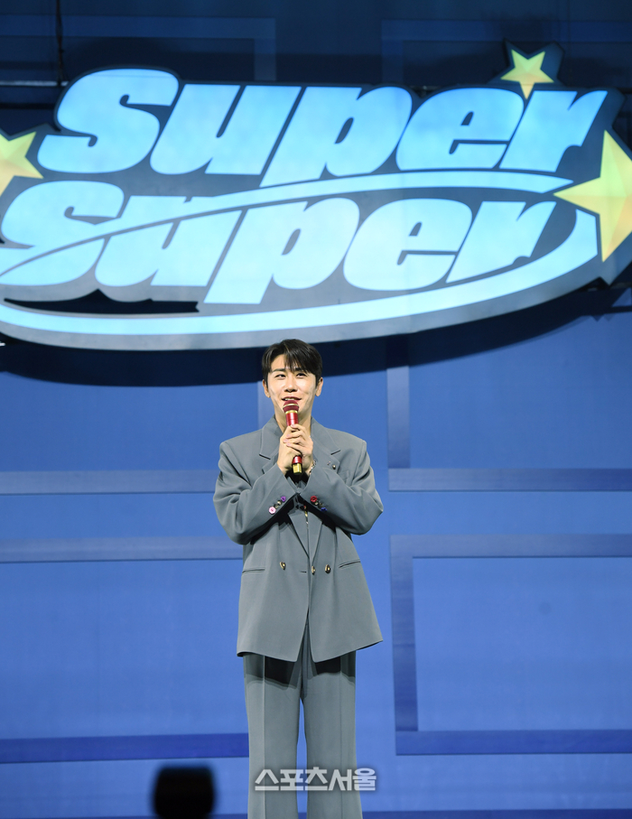 가수 영탁이 3일 서울 용산구 블루스퀘어에서 진행된 미니 앨범 ‘슈퍼슈퍼(SuperSuper)’ 발매 기념 미디어 쇼케이스에서 인사말을 하고 있다. 2024. 9. 3.