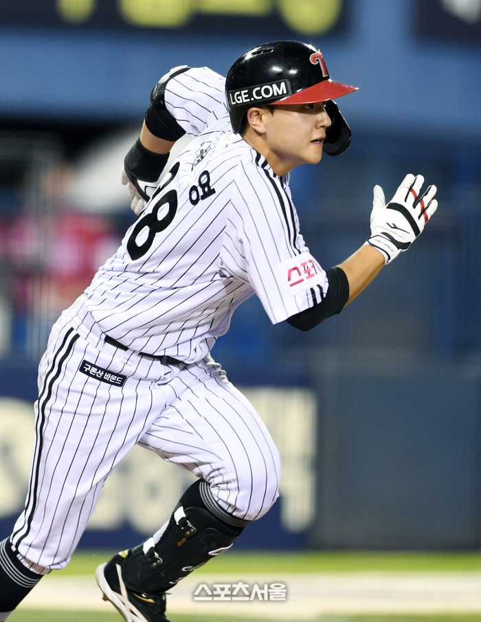 LG 최원영이 4일 잠실구장에서 열린 2024 KBO리그 SSG와 경기 2회말 2사 2루 상황에서 SSG 선발 오원석을 상대로 1타점 2루타를 치고 힘차게 베이스 러닝을 하고 있다. 2024. 9. 4.