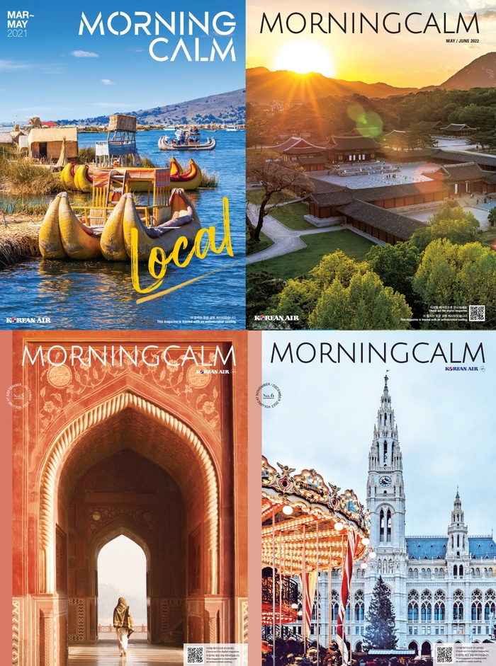 1977년 창간한 ‘모닝캄’은 대한항공 전노선 기내는 물론이고 국내외 직영라운지 11여 곳에 배포되는 종합잡지다. 대한민국 대표 국적기로서의 자부심을 담아 한국의 고유한 아름다움을 세계에 알리고, 해외의 잘 알려지지 않은 여행지를 깊이 있게 소개하며 한국과 세계의 문화를 잇는 가교 역할을 톡톡히 해왔다.