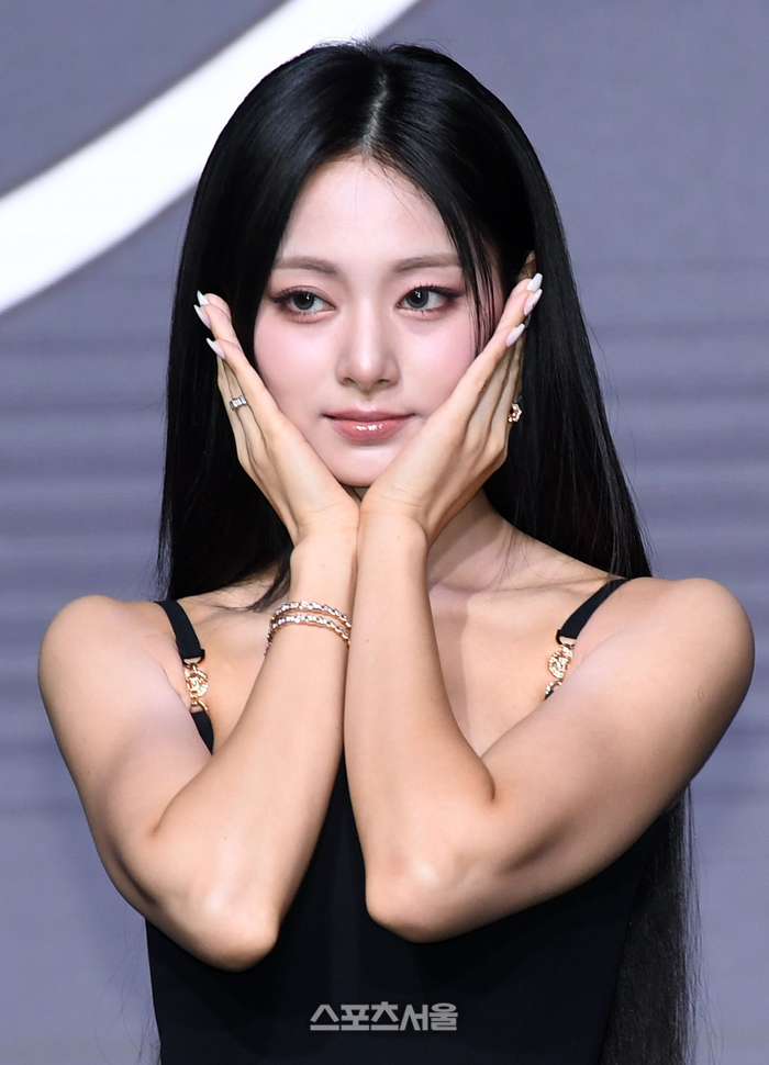 트와이스 쯔위가 5일 서울 송파구 롯데호텔 월드에서 진행된 솔로 데뷔 앨범 ‘어바웃 쯔(abouTZU)’ 발매 기념 기자간담회에서 취재진을 향해 포즈를 취하고 있다.