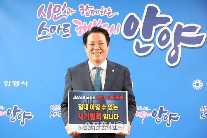 최 시장은 자신의 SNS에 ‘청소년을 노리는 불법 사이버도박, 절대 이길 수 없는 사기범죄입니다’란 메시지와 사진을 올리고 “청소년을 대상으로 하는 불법 사이버 도박은 모두가 경각심을 가져야할 심각한 사회적 문제로, 청소년이 안전한 환경에서 건강하게 성장할 수 있도록 모두 함께 노력해주시기 바란다”고 말했다.