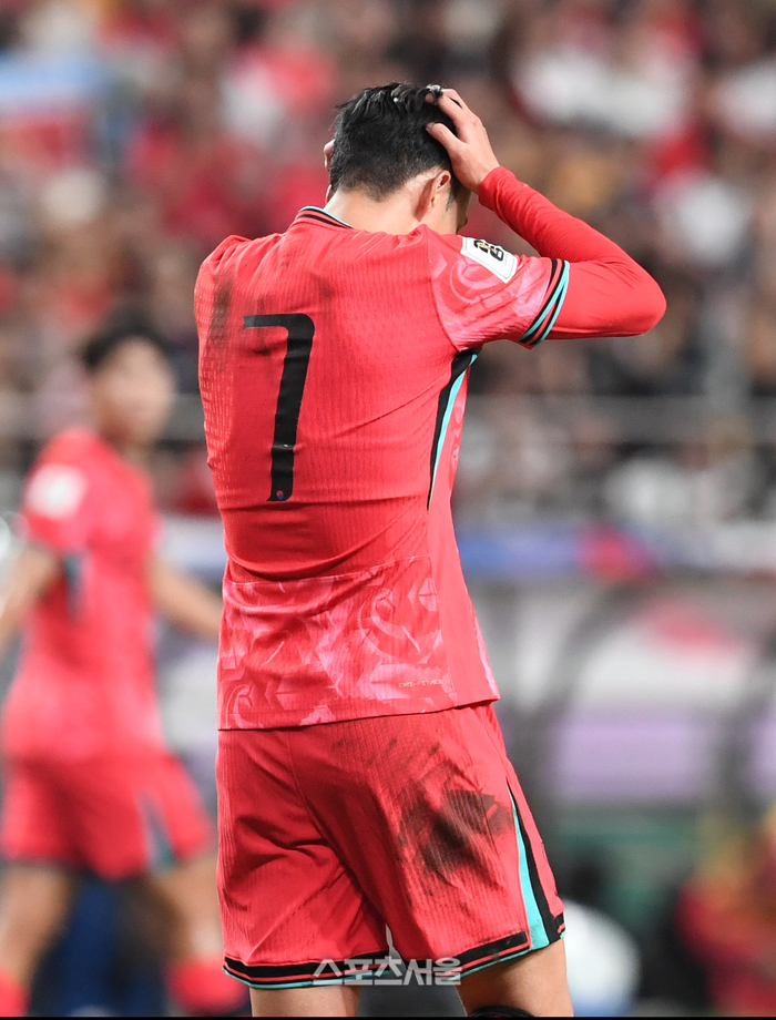 대한민국 축구대표팀 손흥민이 5일 서울월드컵경기장에서 열린 2026 북중미 월드컵 아시아지역 3차 예선 팔레스타인과 경기에서 공격이 무산되자 아쉬워하고 있다. 2024. 9. 5.