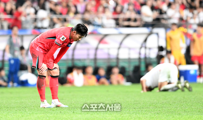 대한민국 축구대표팀의 손흥민이 5일 서울월드컵경기장에서 열린 2026 북중미 월드컵 아시아지역 3차 예선 팔레스타인과 경기에서 0-0 무승부를 기록한 뒤 아쉬워하고 있다. 2024. 9. 5.
