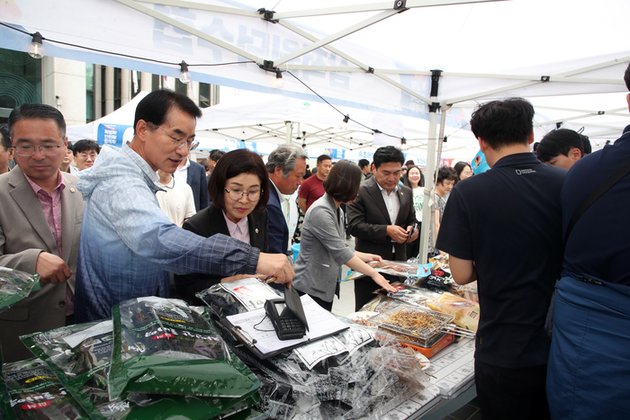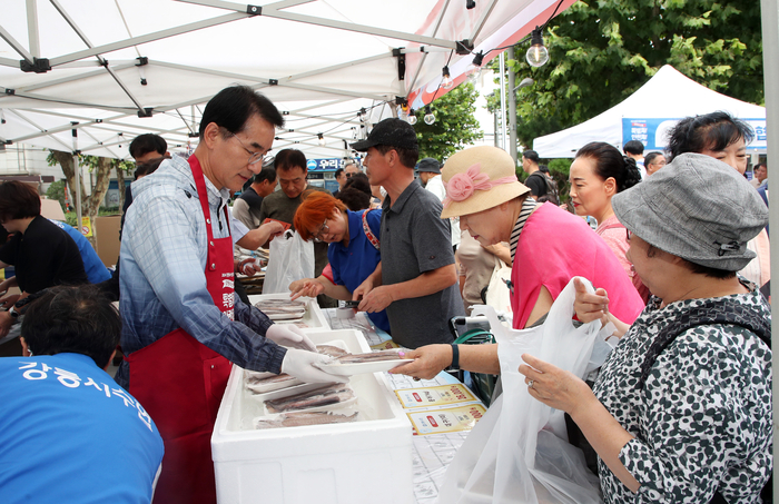 도내 5개 수협과 6개 가공업체 등이 참여한 이번 행사에서는 소비자들이 선호하는 오징어, 미역 등 49종의 가공제품을 선보였으며, 특히 김명선 도 행정부지사와 엄윤순 도의회 농림수산위원회 위원장이 직접 판매 도우미로 나선 선어 특판 코너에서는 준비해 온 손질 선어가 10분 만에 완판 되는 등 고객들의 큰 호응을 얻었다.