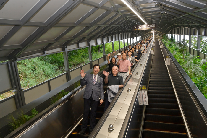 지난 2021년 착공한 이번 사업은 총사업비 139억여 원을 들여 에스컬레이터 4구간(1구간 50m)을 준공하였으며, 이후 원주시 시설관리공단에서 시설물을 인수하여 운영할 예정이다.