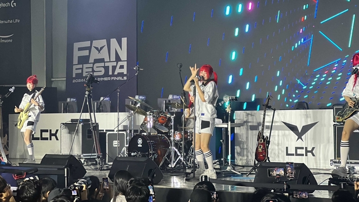 [스포츠서울 | 경주=김민규 기자] 확실한 임팩트다. ‘전야제’ 포문을 연 4인조 걸밴드 ‘QWER’의 화려한 퍼포먼스가 팬들을 열광시켰다. ‘천년고도’ 경주에서 열리는 ‘LoL 챔피언스 코리아(LCK)’ 서머 파이널 시리즈 첫 날 모여든 2000여 명의 팬을 홀리기에 충분했다.