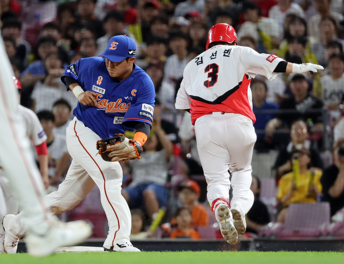 2루 주자이던 페라자는 ‘딱’소리와 함께 3루로 내달렸다. 2아웃이었던 점, 상대 야수의 포구 실패나 악송구 등 실책 변수가 살아있다는 점 등을 고려하면, 달린 방향이 잘못됐다.