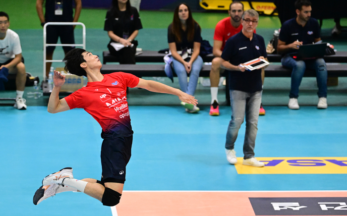 이우진은 7일 수원체육관에서 열린 대한항공과의 2024 한국-이탈리아 남자배구 글로벌 슈퍼매치 수원대회에서 몬차 데뷔전을 치렀다.