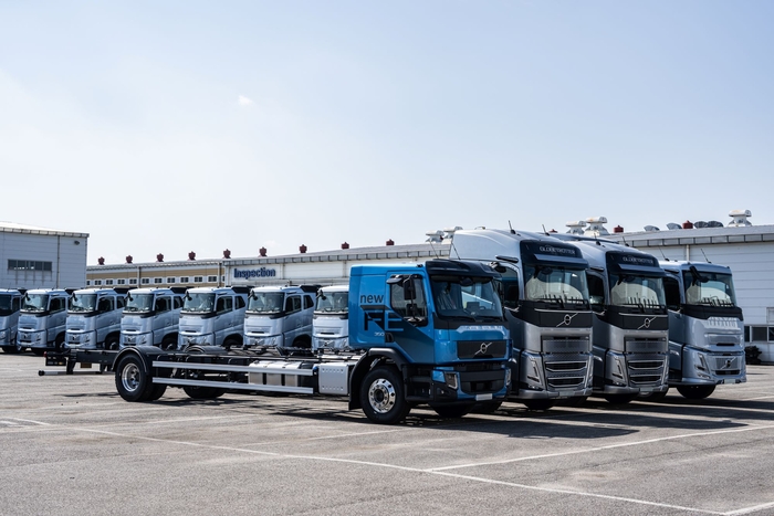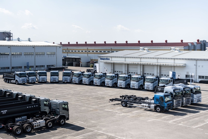 이날 볼보 FH 에어로 트라이뎀 덤프트럭 13대와 FH 에어로 대형카고 1대, FE 중형카고 1대를 비롯한 총 15대를 동시 출고했다.