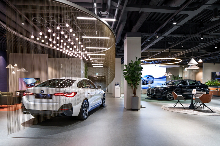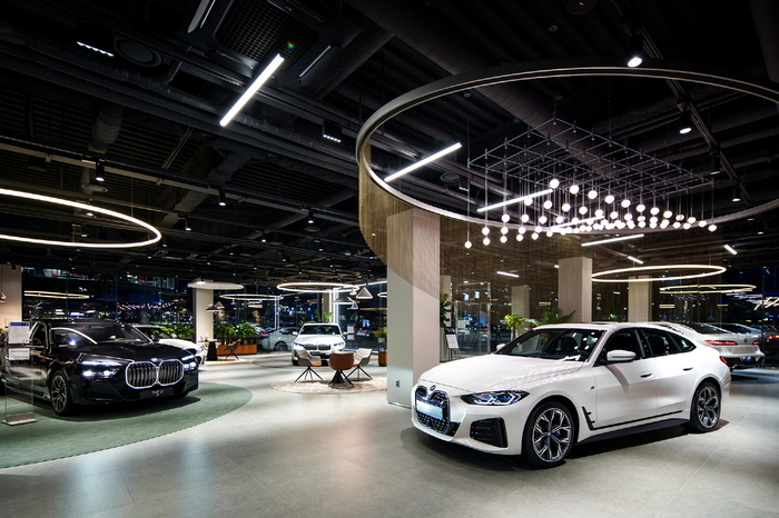 전시장 1층과 2층에는 총 12대의 최신 BMW 모델을 전시해 여유롭게 차량을 살펴볼 수 있으며, 프리미엄 음향 시스템을 설치해 편안하면서 고급스러운 분위기를 연출한다.