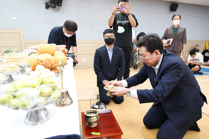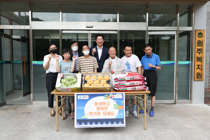 [스포츠서울ㅣ원주=김기원기자]원강수 원주시장은 추석 명절을 맞아 이달 9일 원주복지원(노숙인요양시설)과 꿈꾸는나무단기보호센터(장애인단기거주시설)를 차례로 방문하여 위문품을 전달하고 시설종사자와 입소자를 격려했다.