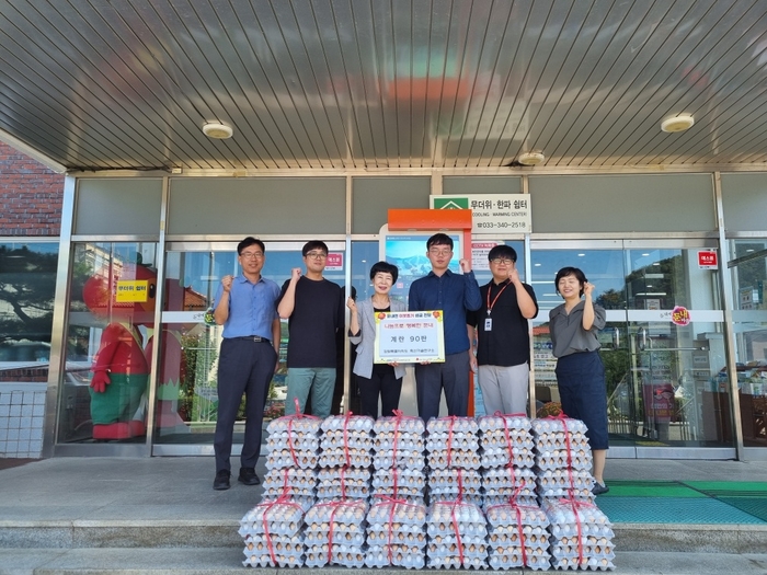 횡성군 둔내면 행정복지센터에 연구소 생산 계란 2,700개(90판) 기탁