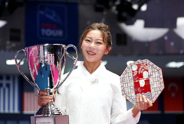 투어 통산 9승을 달성한 그는 프레드릭 쿠드롱(벨기에·8회)을 제치고 프로당구 최다 우승자가 됐다. 또 지난달 베트남 하노이서 열린 3차 투어(에스와이 바자르 하노이 오픈)에 이어 2개 대회 연속 우승에 성공했다. 상금 4000만원을 추가, LPBA 선수 최초로 우승 상금 4억 원(4억 2180만원)도 돌파했다.