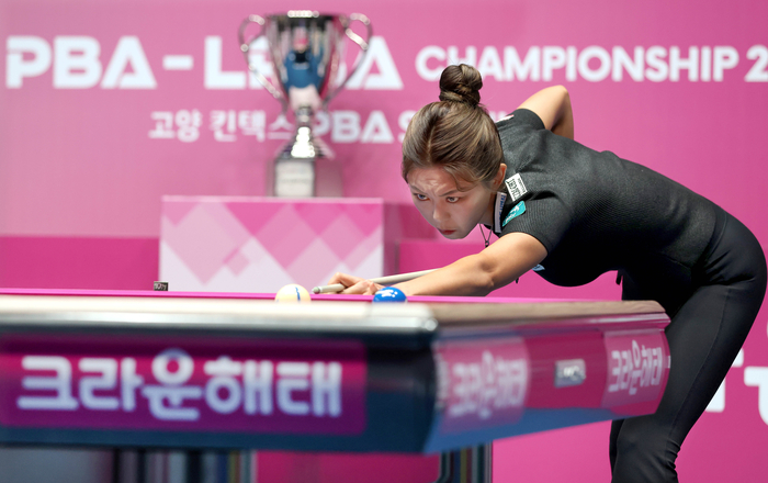 김가영은 17일 경기도 고양시에 있는 킨텍스 PBA 스타디움에서 열린 2024~2025시즌 LPBA 4차 투어 ‘크라운해태 챔피언십’ 결승전에서 한지은(에스와이)과 풀세트 접전 끝에 4-3(10-11 11-4 11-7 6-11 6-11 11-10 9-7)으로 누르고 우승했다.