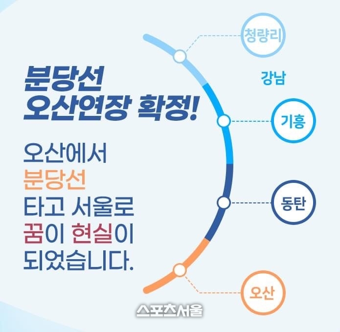 이에 앞서 오산시는 2020년 용인시와 공동으로 ‘6∼8개역 신설, 총연장 16.5∼20.5㎞ 건설’ 등을 주요 내용으로 하는 자체 분당선 연장선 사타를 실시했는데, 당시 BC 값이 0.61∼0.71로 나와 국가철도망 구축계획 반영 기준(0.7)에 부합하는 것으로 나타났다.