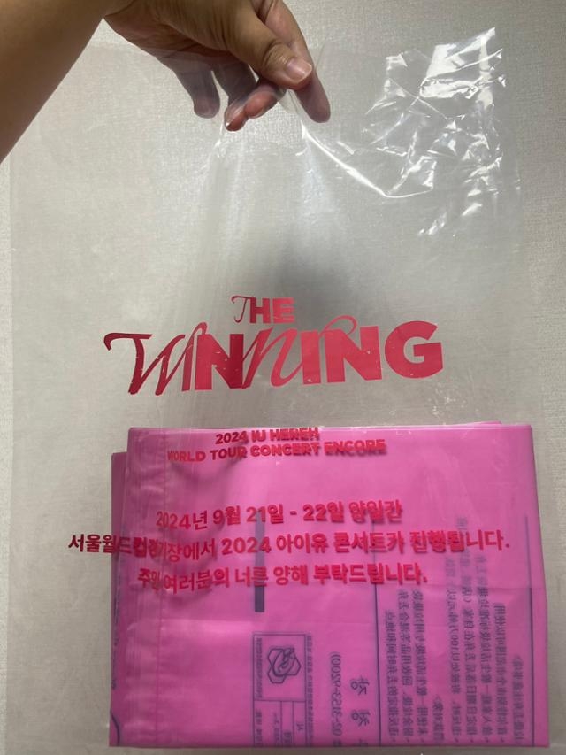 20일 온라인 커뮤니티에는 아이유로부터 쓰레기 종량제 봉투를 선물 받았다는 상암동 일대 주민들의 인증 글이 다수 게시됐다. 종량제 봉투가 담긴 투명 봉투에는 ‘2024년 9월 21, 22일 양일간 서울월드컵경기장에서 2024 아이유 콘서트가 진행됩니다, 주민 여러분의 너른 양해 부탁드립니다’라는 문구가 적혀 있다.