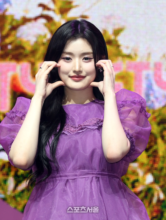 피프티 피프티(FIFTY FIFTY) 아테나가 20일 서울 광진구 예스24 라이브홀에서 진행된 두 번째 미니 앨범 ‘러브튠(Love Tune)’ 발매 기념 미디어 쇼케이스에서 취재진을 향해 포즈를 취하고 있다.