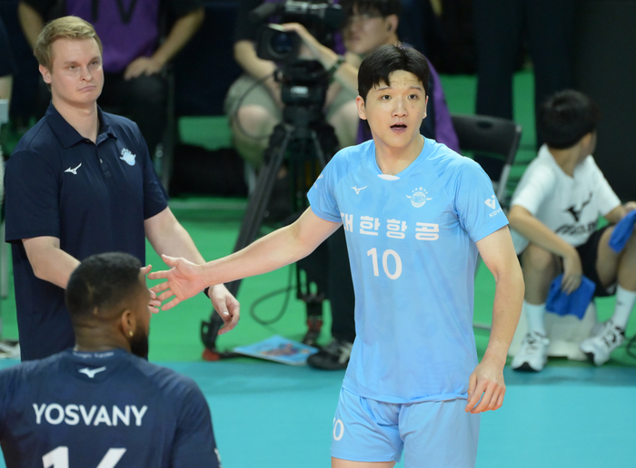 이날 대한항공은 아웃사이드 히터 정지석을 리베로로 투입하는 파격을 선택했다. 정지식 자리에는 이준, 정한용 등 어린 선수들에게 기회를 줬다. 아웃사이드 히터로 활약한 정지석은 리베로로도 손색없는 활약을 펼쳤다.