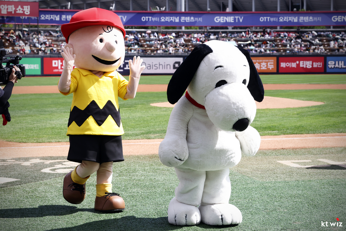 KT는 22일 수원케이티위즈파크에서 열린 2024 KBO리그 SSG전에서 스누피데이를 열었다. 스누피, 찰리 브라운 등 인기 있는 캐릭터들이 등장했다.