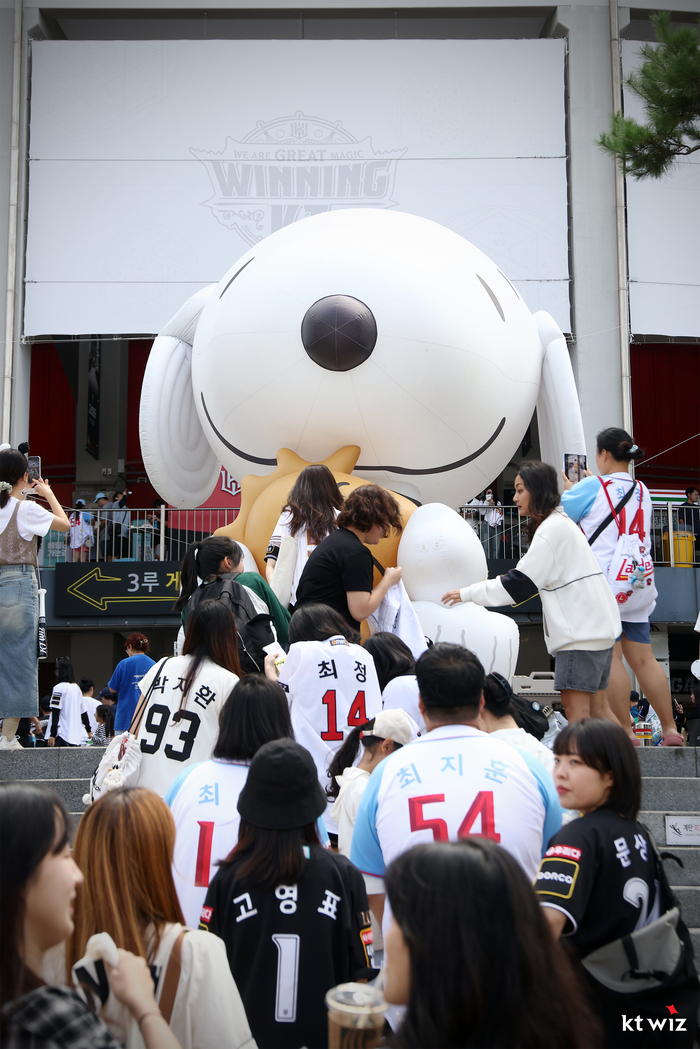 [스포츠서울 | 수원=김동영 기자] KT가 세계적으로 유명한 만화 ‘피너츠’와 함께 스누피데이를 열었다. 팬 반응이 뜨겁다. 상품을 사기 위해 줄이 끝도 없이 이어질 정도다.