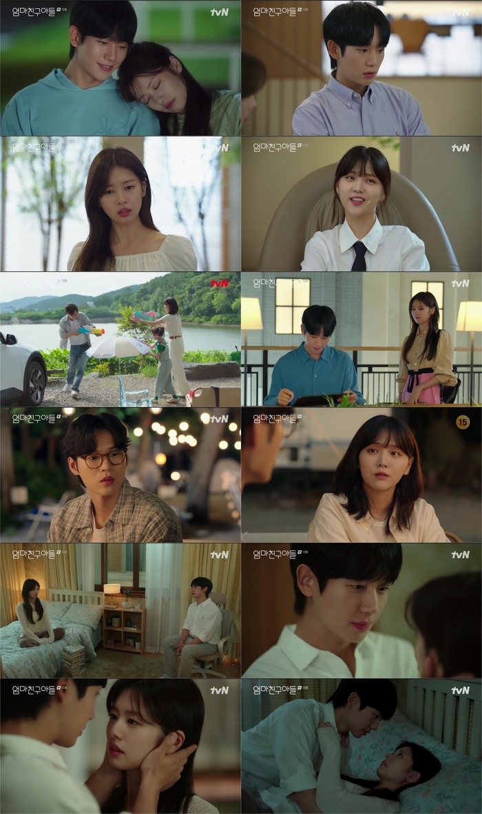 지난 22일 방송된 tvN 토일드라마 ‘엄마친구아들’(연출 유제원, 극본 신하은, 제작 스튜디오드래곤∙더모도리) 12회에는 최승효(정해인 분)와 배석류(정소민 분)가 본격 연애 모드에 돌입한 모습이 그려졌다.
