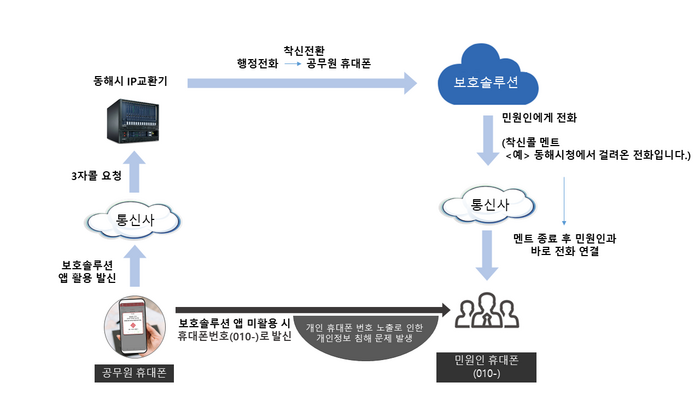 또한, 민원 관련 출장 등 외부에서 업무 중에 민원인이 행정전화번호로 전화해도 개인정보 노출 걱정 없이 개인 휴대전화로 통화할 수 있어 양방향 소통과 신속하고 공백없는 업무처리가 가능하다.