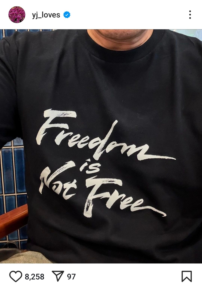 지난 3월 그룹 부회장에서 회장으로 승진한 후 SNS 게시물을 대부분 정리하고, 일절 글을 올리지 않아 궁금증을 자아내기도 했지만, 지난 16일 정 회장은 ‘Freedom is Not Free’(자유는 공짜가 아니다)라는 영문 글귀가 새겨진 검은색 티셔츠 사진이 공개 또 한 번 관심을 끌었다.