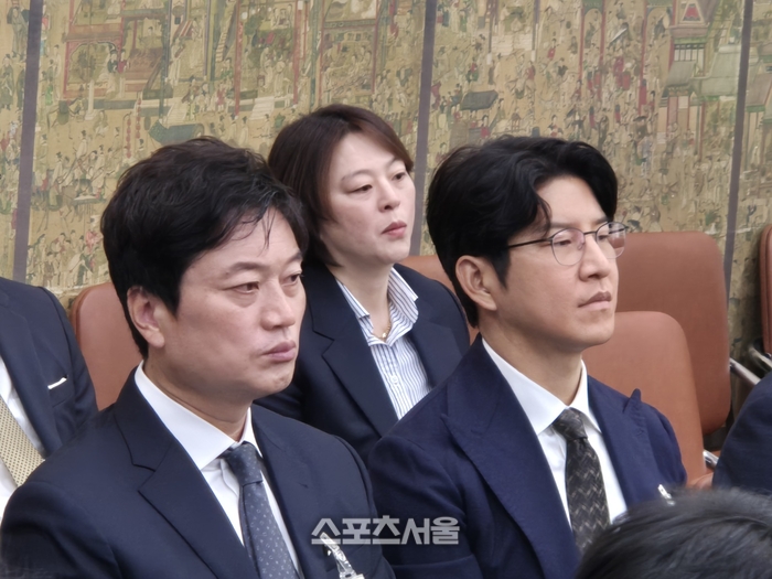 [스포츠서울 | 글·사진 이상배 전문기자] 24일 오후 국회 문화체육관광위원회(위원장 전재수) 현안 질의에서 논란의 핵심 내용 중 하나인 ‘정몽규 회장 4선 연임 도전 문제’에 대해 위원들의 수차례 질의에 “심사숙고해 결정하겠다”는 모호한 입장을 반복적으로 내놓자 더불어민주당 조계영 의원이 참고인 자격으로 참석한 박문성 축구 해설위원에게 제왕적 대한축구협회 문제에 대해 부연 설명이 있으면 말해달라고 주문했다.
