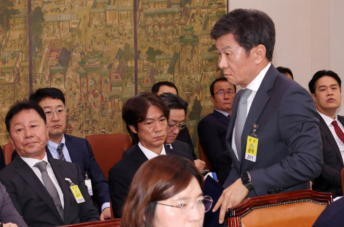 24일 국회 문화체육관광위원회(문체위) 현안 질의에 증인으로 참석한 정몽규 대한축구협회장은 앞서 문체위원에게 A4 6장 분량의 입장문을 전달했다.