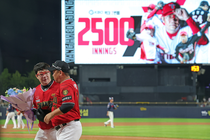 양현종은 25일 정규시즌 마지막 등판에서 ‘역사’를 썼다. 5이닝을 소화하면서 개인 통산 2503.2이닝이 됐다. 2004년 송진우 이후 20년 만에 2500이닝을 달성했다. 역대 2호다. 지난 2022년 최연소 2000이닝을 달성한 후 2년 만에 더 높은 곳에 도달했다.