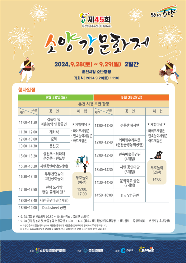 소양강문화제위원회 주최, 춘천문화원 주관, 춘천시 후원으로 소양강문화제는 올해로 45회째다.