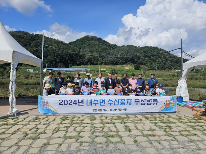 [스포츠서울ㅣ춘천=김기원기자]강원특별자치도(이하 ‘도’)는 지난 9월 26일(목) 횡성군 섬강 둔치(한우축제장)에 동자개 4만 마리를 방류했다고 밝혔다. 이번 방류는 내수면자원센터에서 자체 생산한 전장 4cm급 동자개로, 지역생태계 복원 및 수자원 관리에 기여하기 위해 이루어졌다.