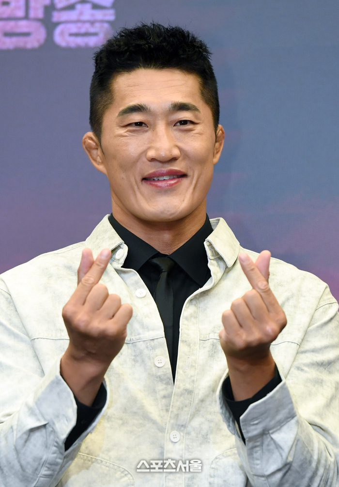 이종격투기선수 김동현이 27일 서울 마포구 스탠포드호텔에서 진행된 채널A ‘강철부대W’ 제작발표회에서 취재진을 향해 포즈를 취하고 있다. 2024. 9. 27.
