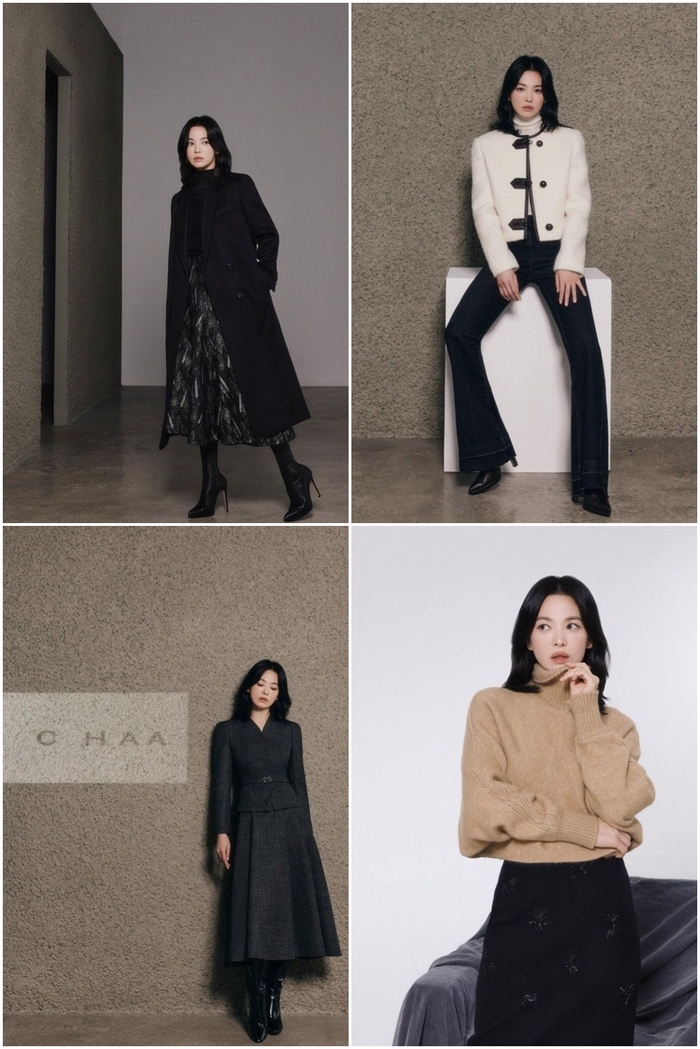 송혜교는 재킷과 코트를 착용해 깔끔한 겨울 스타일링을 자랑했다. 이어 스트라이프 패턴의 포인트가 돋보이는 재킷과 팬츠 셋업으로 시크한 무드를 연출했다. 입체감 있는 텍스처의 재킷을 터틀넥 풀오버에 매치해 패션 센스를 내비치기도 했다. 또한 재킷과 A라인 스커트를 스타일링해 세련된 분위기를 표현했다.