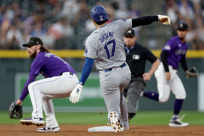 오타니는 28일(한국시간) 미국 콜로라도주 덴버 쿠어스 필드에서 열린 2024 메이저리그(ML) 콜로라도전에 1번 지명타자로 선발 출전해 2회초 적시타를 때린 후 2루를 훔쳤다.