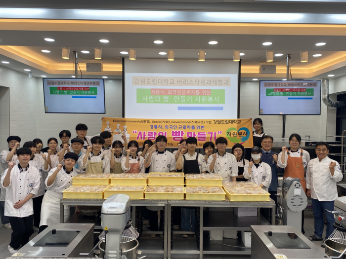 이날 자원봉사에 참여한 바리스타제과제빵과 30여 명의 재학생들과 최근표, 강소성, 박지아 교수는 직접 만든 소보루빵 350개를 지역 내 외국인 근로자들에게 직접 전달하며, 강릉시 지역 노동력 제공에 기여함에 있어 감사를 전했다.